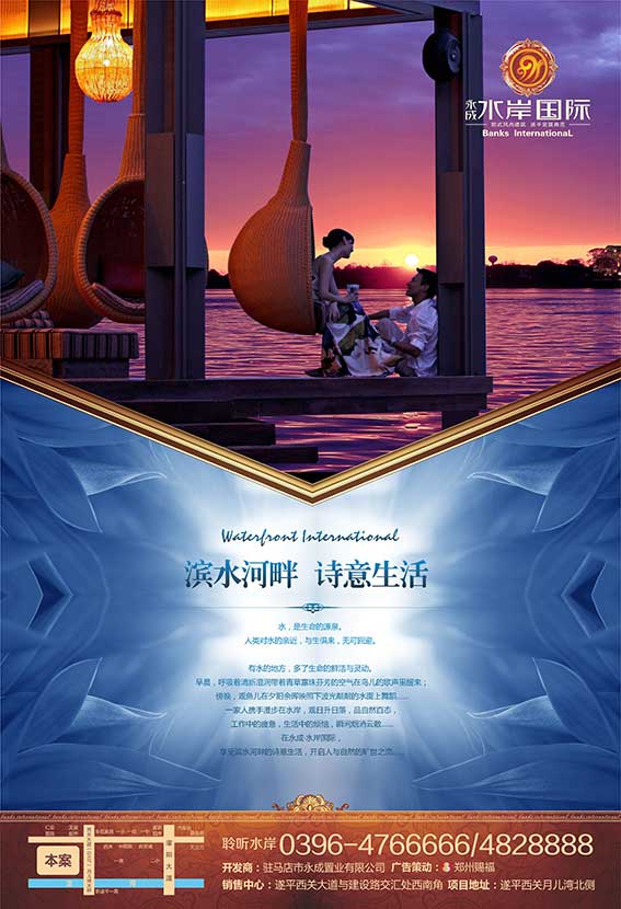 公司案例:水岸國際營銷中心單張,晚霞中的情侶